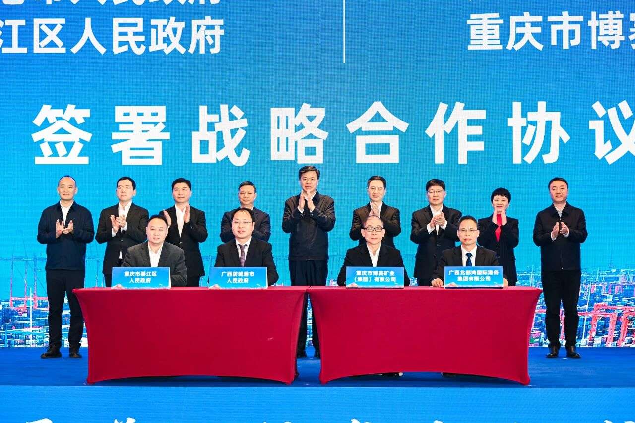 在推介会成果发布环节,北部湾港集团与重庆市博赛矿业(集团)有限公司签署战略合作协议,许永锞、郑向东、马正国等见证签约。双方将以业务合作为纽带,在区域大宗矿石集散中心建设、临港保税仓和现货交易中心、远洋运输、关键技术产业、供应链金融和海外产业布局等领域加强合作,积极构建全方位、高水平、深层次的战略合作伙伴关系。